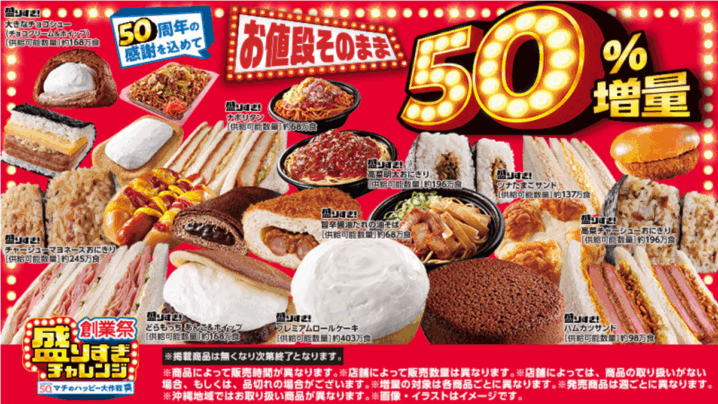 【ローソン50周年】盛りすぎチャレンジがアツすぎる!50%増量でお得が止まらない♡ こんにちは、リナです! 今年もやってきました、ローソンの「盛りすぎチャレンジ」! なんと今年は創業50周年記念で、史上最大の41品が約5…